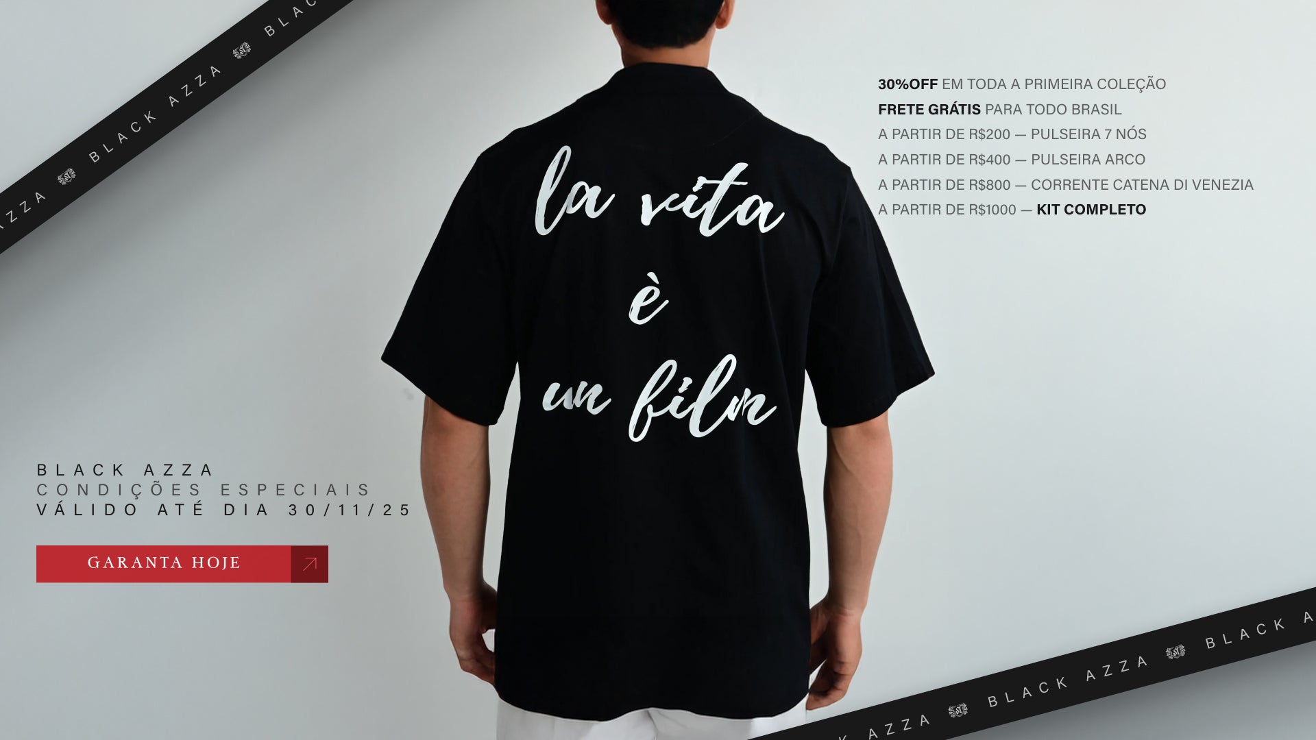 Todas as peças da primeira coleção da Azza com 30%OFF, FRETE GRÁTIS e BRINDES PROGRESSIVOS.