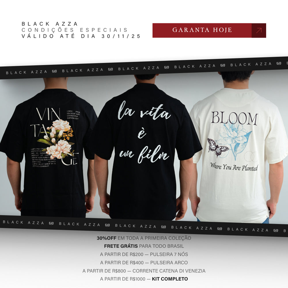 Todas as peças da primeira coleção da Azza com 30%OFF, FRETE GRÁTIS e BRINDES PROGRESSIVOS.